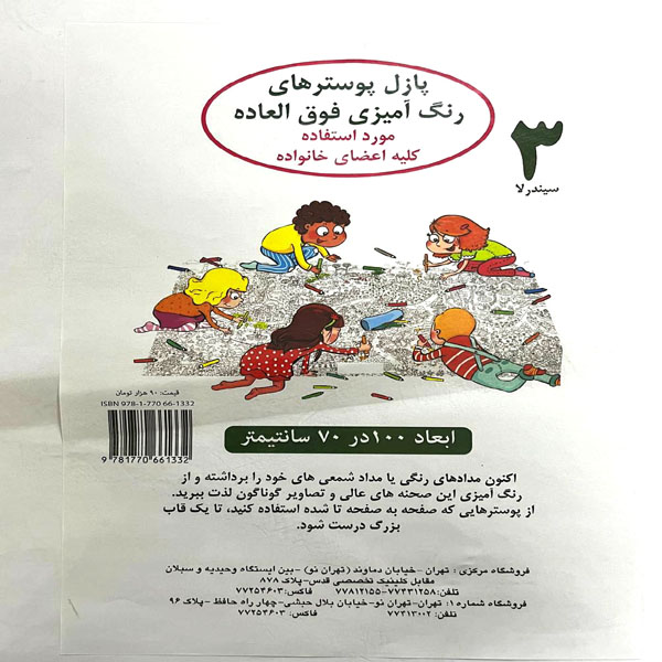 این محصول به شکل یک پوستر 100*70 می باشد که هر یک از اعضای خانوداه می توانند همزمان یک بخشی از آن را رنگ آمیزی کنند